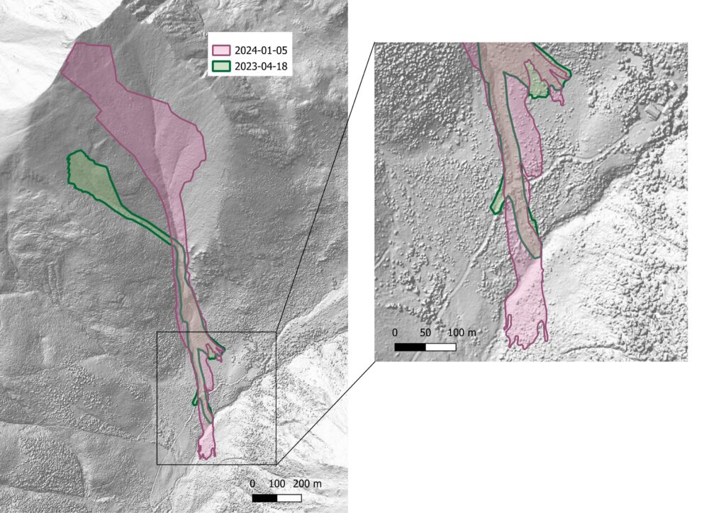 V januári to neboli iba mechanicky uvoľnené, ale spadlo aj väčšie množstvo samovoľných lavín, mimo iné aj lavína, ktorá opäť zasiahla cestu na Žiarsku chatu. 28.1.2024 podobne ako v minulej sezóne to bolo z masívu Baranca (z Čiernych stien).