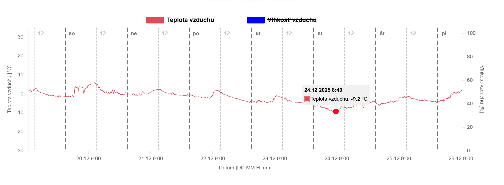 Počas celého uplynulého týždňa (od 20. 12. 2025) panovalo v našich horách stabilné počasie pod vplyvom tlakovej výše. Doznievali inverzie. Na Štedrý deň sa definitívne ochladilo v najvyšších polohách. Teploty už klesali pod -10°C. Takmer celý týždeň bolo na horách slnečno so slabým vetrom.