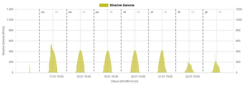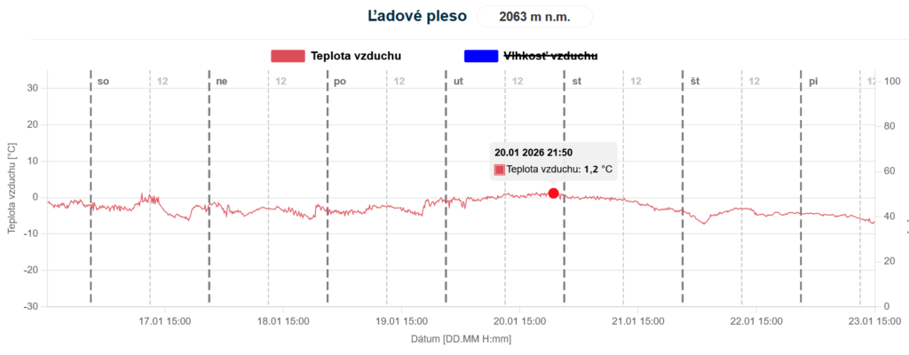 V polovici januára (16.1) sa územie strednej Európy dostalo pod vplyv mohutnej tlakovej výše (ktorej stred mal viac ako 1040 hPa). To štandardne prinieslo slnečné počasie so slabým vetrom v dolinách a kotlinách, no pomerne silný južný vietor na hrebeňoch hôr. Teplota vzduchu sa nad pásmom lesa počas celého obdobia pohybovala od -8 do +5°C, v kotlinách naopak v noci klesala až k -20°C a mráz sa udržal počas celého dňa. Vzduch bol pomerne suchý, preto slnečné počasie prevládalo vo všetkých polohách (v dolinách väčšinou nebola hmla). Takýto charakter počasia pretrvával až do stredy večera (21.1), čo znamená že na horách sme mali 6 nepretržitých dní slnečného počasia. Od štvrtka 22.1 sa oteplilo, zamračilo sa a vyskytli sa aj slabé snehové zrážky (do 3 cm nového snehu).