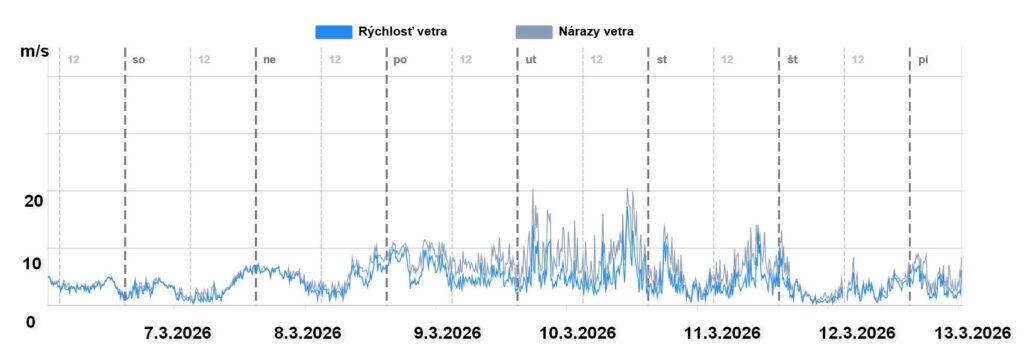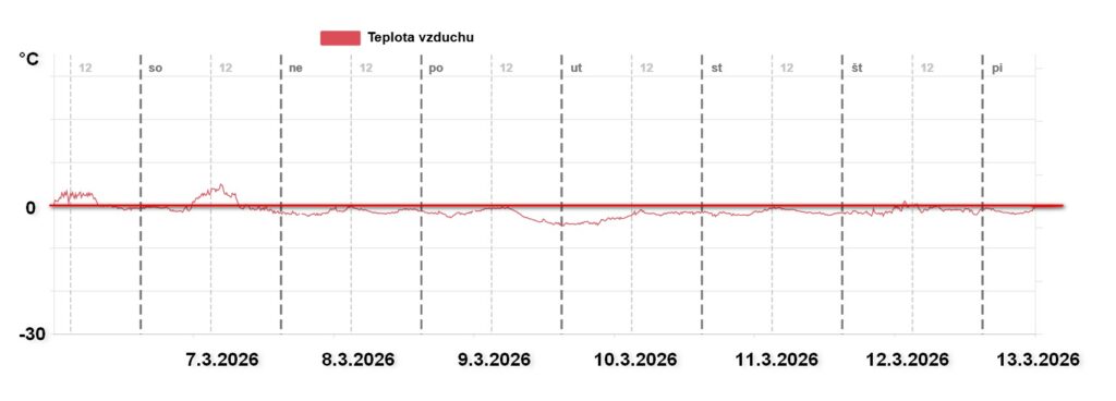 Z grafov je jasné, že počas víkendu a začiatkom týždňa ovplyvňovala počasie v horstvách Slovenska tlaková výš. Jasné počasie, vysoké teploty, slabý vietor – to bolo kombo vytvárajúce zo snehu cez deň čalamádu. V utorok sa situácia začala jemne meniť, horstvá Slovenska zasiahol rozpadajúci sa studený front, ale veľa vody nenamútil.