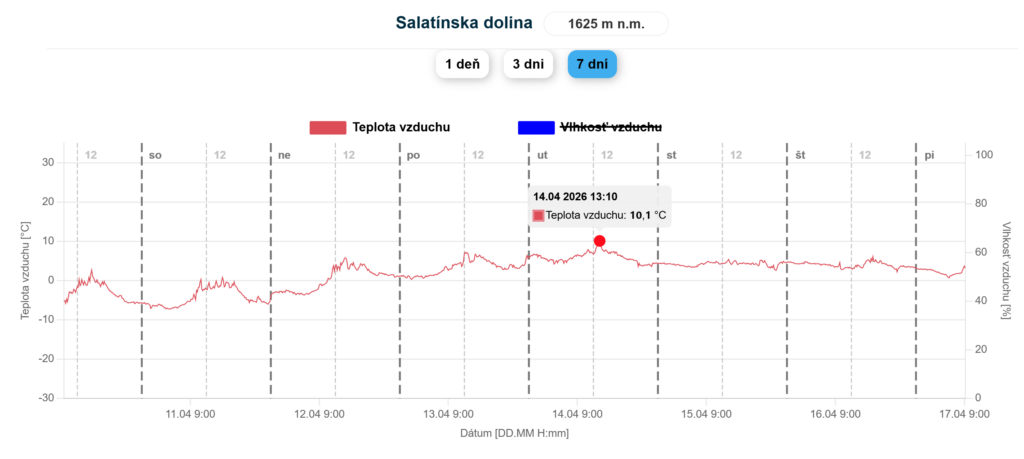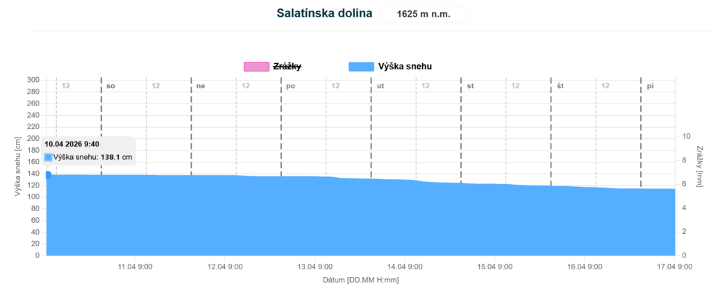 Posledný týždeň sa v slovenských horách niesol v typickom aprílovom duchu, keď sa veľmi rýchlo menil charakter počasia – od slnečných a teplých dní až po zamračené, hmlisté podmienky, miestami sprevádzané dažďom. Vo vyšších polohách sa už prejavilo výraznejšie oteplenie a teploty sa dostávali nad bod mrazu aj vo vrcholových partiách, čo urýchlilo jarnú premenu snehovej pokrývky. Napríklad v Salatínskej doline teplota presiahla + 10°C